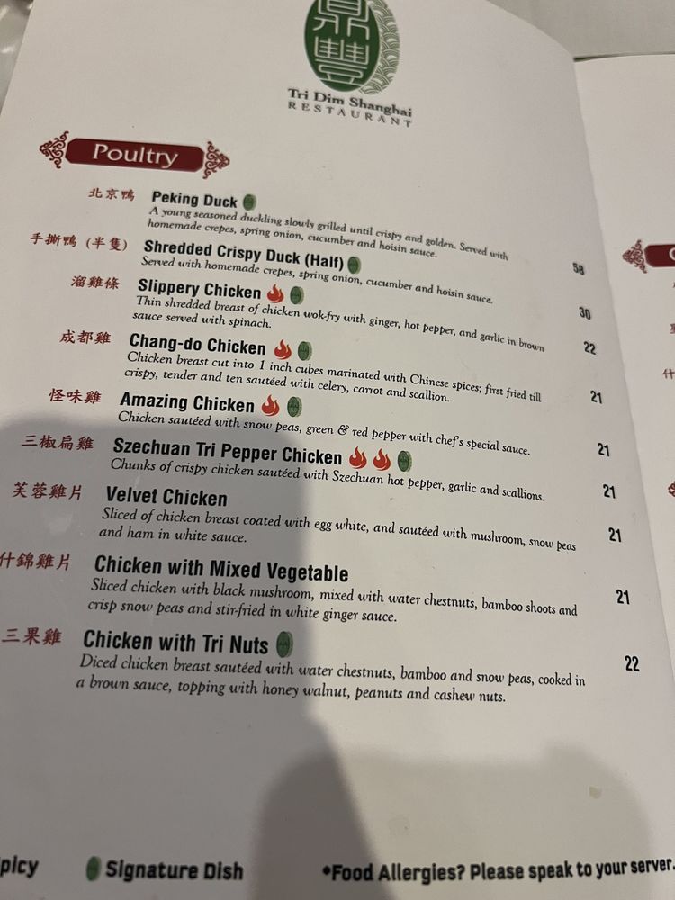 Tri Dim Shanghai is a trendy, intimate Chinese restaurant located in New York City. The menu offers a variety of options, including dim sum, Chinese dishes, and lunch specials. Customers have praised the flavorful BBQ pork buns, chicken dumplings in chili sauce, General Tso chicken, and King Pao chicken. The service is quick and friendly, with the staff accommodating walk-ins and reservations alike. The ambiance is described as classy and comfortable, making it a great spot for brunch, lunch, or dinner. The restaurant also offers outdoor seating, a full bar, and a happy hour. Overall, Tri Dim Shanghai provides a delightful dining experience with delicious food and impeccable service.